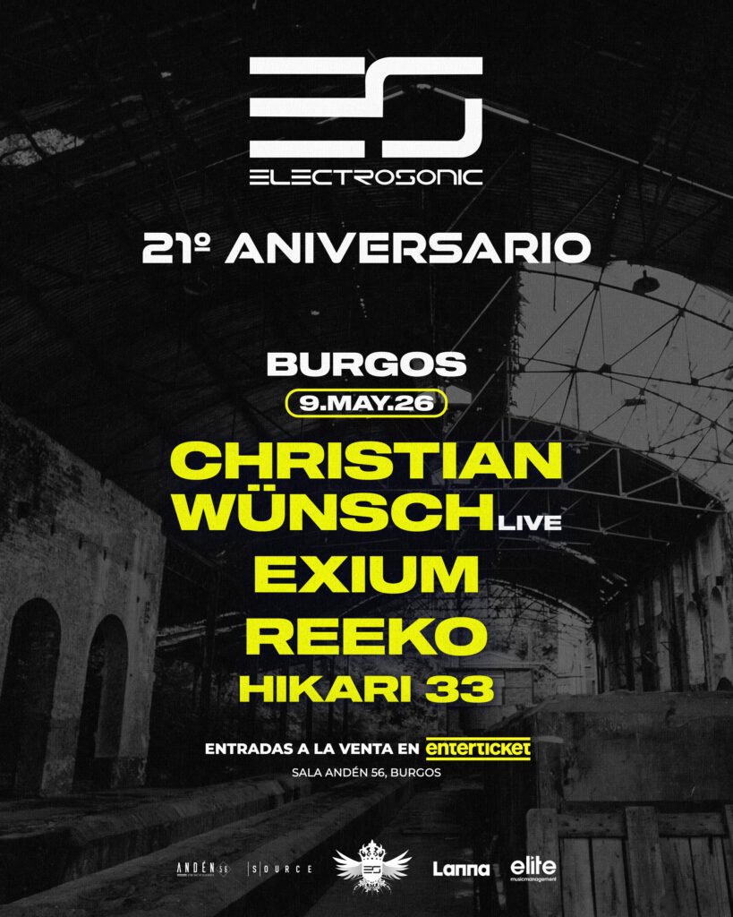 Electrosonic , una historia que empezó en Burgos y que, con los años, se convirtió en algo mucho más que música. Una forma de entender la pista, la comunidad y la cultura electrónica. El próximo sábado 9 de mayo nos volvemos a encontrar en @el_anden_56 para celebrarlo. Un cartel a la altura de la ocasión:@christian_wunsch (live)@exium@reeko_mentaldisorder@hikari33irakih Una noche para recordar lo que fuimos y seguir escribiendo la historia de Electrosonic en Burgos. 🎟️ Entradas a la venta en Enterticket