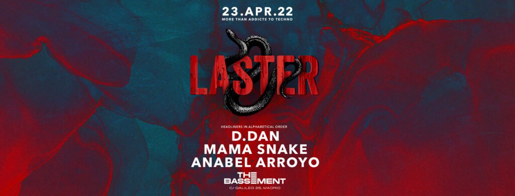 Tras un arranque de 2022 espectacular con su cuarto capítulo protagonizado por Regal,Lobster y Roll Dann, Laster Club continúa presentando carteles más que interesantes. Lasesión madrileña celebrará, en The Bassement, el próximo 23 de abril su sexto capítulocon figuras importantes de la escena actual.En este nuevo capítulo podremos bailar a ritmo del americano afincado en Berlín D.Dan,quien se ha convertido en una de las figuras más llamativas de la escena techno debido asu incansable groove, su frenesí y su estilo mental y psicodélico. Vendrá acompañado deotra ecléctica artista, la danesa Mama Snake es una terremoto en cabina y cumplirá con lasexpectativas de los más exigentes, con una selección musical de lo más variada ycontundente. El cartel se completa con Anabel Arroyo, residente de FOLD London y LasterClub.Esta fecha llegará después del evento que Laster Club celebrará este próximo 12 de marzojunto a Daria Kolosova, Stephanie Sykes y Anabel Arroyo, siendo una fecha dedicada al DíaInternacional de la Mujer y al apoyo del pueblo ucraniano.Laster Club sigue con su objetivo de establecer un concepto libre de prejuicios, con el bailey el respeto como principales características, sumados a una fuerte puesta en escena y almejor sistema de sonido.Entradas disponibles aquí. 23.04.2022D.Dan – Mama Snake – Anabel Arroyo https://link.dice.fm/Laster23Apr