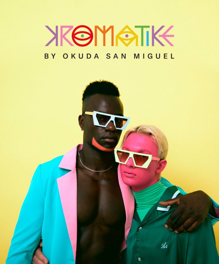Kromatike es una línea de gafas de sol creada por Okuda San Miguel para compartir su visión de un mundo lleno de color. Hubo un tiempo en el que, con la llegada del verano, acudíamos raudos a desempolvar las gafas de sol que habíamos dejado hibernando. Sin embargo, de un tiempo a esta parte, estas se han convertido en parte imprescindible de nuestro vestuario en cualquier época del año. Que se lo pregunten si no a Okuda San Miguel. El artista español ha hecho de las gafas de sol un elemento fetiche de su indumentaria. Su colección alcanza las 150 unidades de todos los tipos… y colores. Era cuestión de tiempo por tanto que el artista español lanzará al mercado su propia colección de gafas de sol. Y estas han llegado. Se llaman Kromatike y con ellas Okuda comparte su visión de un mundo lleno de matices: el diseño de estas gafas pone en valor la diversidad y propone el color como símbolo de una actitud positiva ante la vida. TIENDA Las gafas están hechas a mano en Madrid por NINA MÛR, una marca de gafas sostenibles basadas en la innovación, el arte y la calidad. Se pueden lavar, resisten tanto el calor como el agua, y son súper ligeras. Esta primera colección de Kromatike hace honor a su nombre. Propone dos modelos de gafas –Rainbow y Flúor- cuya montura y patillas son de diferentes colores, pudiendo elegir entre hasta trece combinaciones distintas. Dentro del modelo Rainbow escoge entre hasta 9 colores: amarillo, azul, blanco, naranja, negro, rojo, rosa, verde y violeta. En el caso del flúor, cuatro son los disponibles: amarillo, blanco, negro y rosa. Además, las gafas Kromatike vienen en un estuche de cuero reciclado certificado fabricado por Labienhecha, un taller de confección sostenible 100% local. Y con una cadena producida por el equipo de Ink and Movement para que pueda hacer de bolso. En las Rainbow, este es de color rosa flúor con cadena amarilla. Para las Flúor, la funda es blanca con cadena multicolor. A su vez, ¡todas las gafas incluyen su propia cadena para no perderlas!