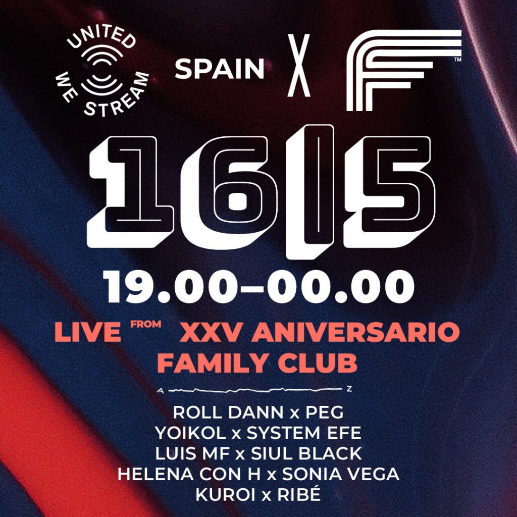 La mítica sala de Sonseca reabrirá sus puertas durante unas horas coincidiendo con la presentación a nivel nacional de United We Stream. Cinco sets y diez artistas harán vibrar los cimientos de su sala principal para seguir reivindicando la falta de público y de una plan de recuperación del sector que nunca llega. El domingo 16 de mayo es la fecha anunciada para que uno de los grandes templos de la electrónica, Family Club Sonseca, cumpla años de forma muy peculiar. Después de meses de inactividad impuesta, donde ninguna de las salas pertenecientes a la escena musical ha recibido ayuda gubernamental, es necesario buscar visibilidad aprovechando eventos tan importantes como este XXV Aniversario. El streaming coincidirá con la presentación de United We Stream Spain, surgido de la sede capitalina y consecuencia de su más inmediata apertura en lo que a localizaciones geográficas se refiere. El horario será de 19:00 a 00:00 y contará con cinco back2backs desde la sala principal de Family. La emisión en HD se realizará de manera simultánea desde Facebook, Youtube y Twitch (canales oficiales) y desde los perfiles de los medios colaboradores que fecha a fecha se une en la reivindicación. El cartel de artistas estará formado por leyendas como Luis Mf, Siul Black (Luismi Delpino) en formato techno, perlas muy vinculadas con la sala como Roll Dann, PEG, Yoikol o System Efe, representación femenina en formato cdj b2b vinilo con Helena con H y Sonia Vega y la visita especial de la oscuridad de Kuroi y Ribé. A esta sensacional propuesta se sumarán las visuales de Carolina Sainz, con demostrada experiencia en el sector desde sus sellos Motionloops y Volumetricks, y el lightjockey de la casa David Mora. United We Stream Spain anuncia además su siguiente emisión en otra mítica sala como Moog (Barcelona) a finales del mes de mayo, pronto se desvelará más información al respecto. LINEUP – 25 Aniversario Family ClubUnited We Stream Spain[Domingo 16 mayo 2021] – Roll Dann x PEG– Yoikol x System Efe– Luis Mf x Siul Black– Helena con H x Sonia Vega– Kuroi x Ribé > Evento Oficial de Facebook <
