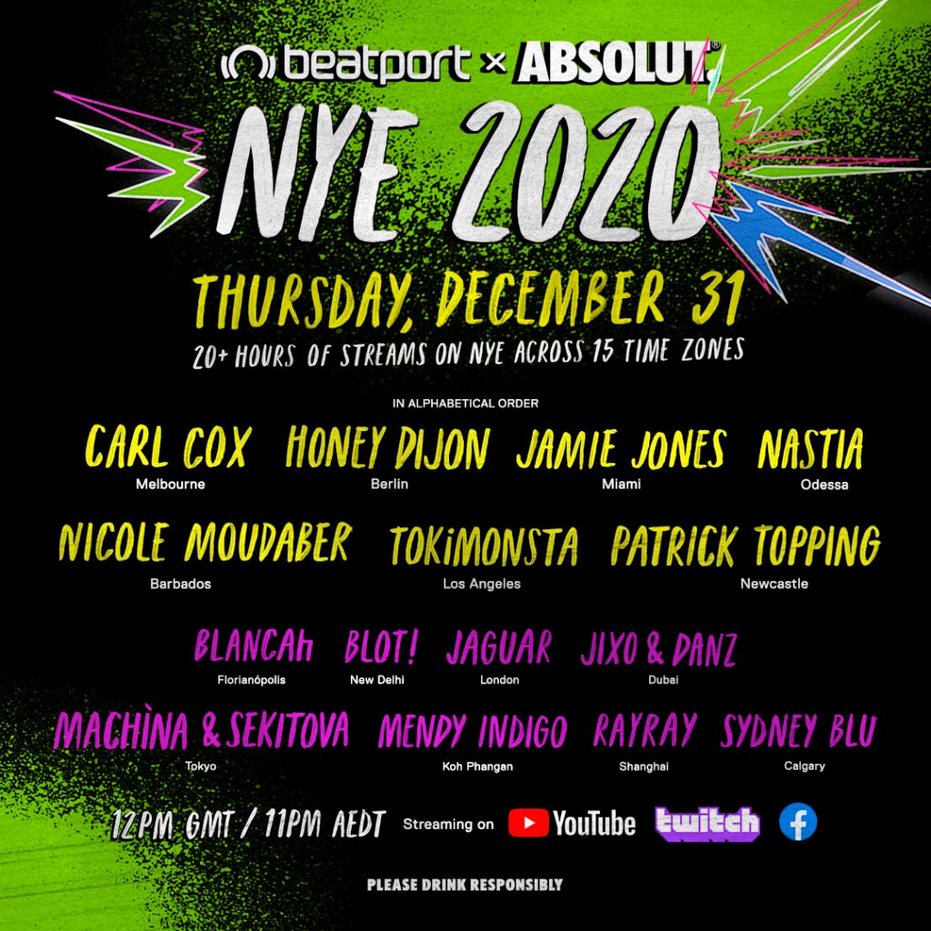 • Absolut y Beatport se unen para organizar la fiesta de Nochevieja más universal, que unirá a15 zonas horarias y ciudades al ritmo de la mejor música electrónica.• Dj’s internacionales de talla de Carl Cox, Honey Dijon, Jamie Jones, Nastia o Patrick Toppingformarán parte del elenco musical que dinamizará este evento virtual. Madrid, diciembre 2020.- Absolut y Beatport han creado #DanceAway2020, la mayor fiesta de Nochevieja online del mundo que rendirá homenaje al poder de la conexión mientras se despide uno de los años más complicados. Beatport producirá una serie de “live streams”, para dar la bienvenida al nuevo año en todo el mundo, en casas o lugares icónicos.Una experiencia única para dar la bienvenida al nuevo año y a un futuro mejor, que contará con una alineación estrella de DJs como Carl Cox,Jamie Jones o Honey Dijon, quien realizará su primer stream desde el confinamiento, en un épico evento global de transmisión en vivo demás de 20 horas. La sesión comenzará antes de la medianoche hora local en Melbourne, Australia, con Carl Cox sonando en una de las primeras celebraciones deAño Nuevo 2021 en el planeta. A partir de ahí, la fiesta de Nochevieja más ambiciosa del mundo se extenderá a través de más de 15 zonas horariasy ciudades, incluyendo Shanghai, Nueva Delhi, Dubai, Odessa, Berlín, Londres, Florianópolis, Miami, Calgary y Los Angeles, antes de terminarde nuevo en Melbourne con un set de cierre de Carl Cox. ABSOLUT NYE 2020¿Cuándo?El 31 de diciembre de 2020. La Nochevieja de los 15 husos horarios¿Dónde?En todo el mundo. El evento y las sesiones se verán en streaming en todos los canales Beatportpara asegurar el alcance: Twitch, YouTube, Facebook.Para más información visita www.absolut.com/NYE2020 o sigue @absolut_es Cartel #DanceAway2020Ciudad ArtistaMelbourne Carl CoxTokyo Machina & SEKITOVAShanghai Ray Ray Khoh Phangan Mendy Indigo Nueva Delhi BLOT!Dubai Jixo & DanzOdessa NastiaBerlin Honey DijonNewcastle Patrick ToppingLondon JaguarFlorianópolis BLANCAhBarbados Nicole MoudaberMiami Jamie JonesCalgary Sydney BluLos Angeles TOKiMONSTAMelbourne Carl Cox