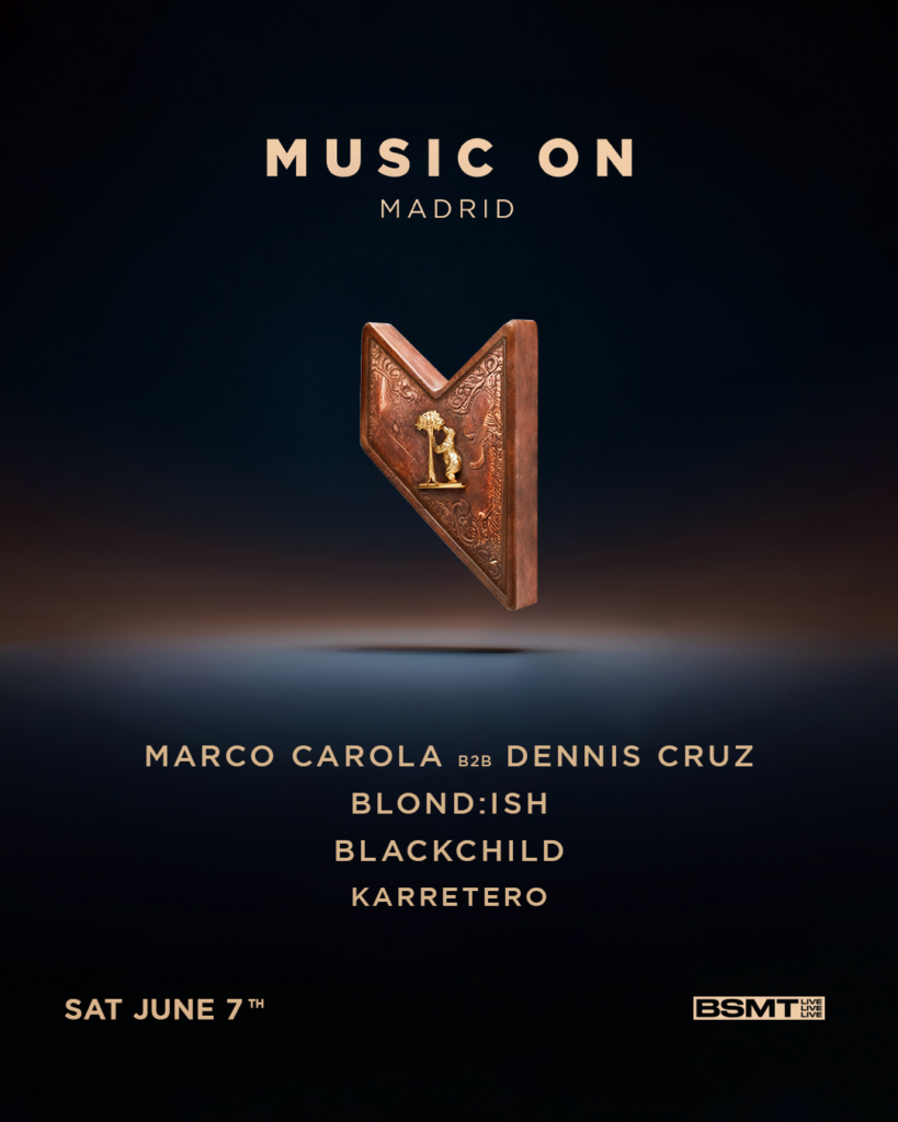 Marco Carola, Dennis Cruz, Blond:ish, Black Child o Karretero protagonizan esta fecha exclusiva en la capital Music On Madrid anunciaba hace unos días el Sold Out para su cita en Madrid este sábado 7 de junio. Un evento que será la bienvenida oficial al verano en la capital un recinto completamente nuevo en el circuito, en el Parque de la Cuña Verde de O’Donell. Music On creará una producción de alto nivel, y ya da a conocer los horarios oficiales para esta jornada. El dj y productor madrileño Karretero arrancará la jornada en Music On, con un set de warm up, que dará paso a la primera actuación internacional de la jornada, el italiano Blackchild, que comenzará su set a las 17.30. A las 19.00 será el turno de Blond:ish. La productora será una de las actuaciones más esperadas de la jornada. Un show que concluirá para dar paso al B2B que pondrá el broche de oro a la jornada, con el combo sobre el escenario del madrileño Dennis Cruz y el ideólogo de Music On, Marco Carola, que comandarán el evento hasta el cierre. Music On apuesta en este evento por un espacio abierto, rodeado de zonas verdes y totalmente accesible dentro de la circunvalación M-40, donde se realizará una producción sin precedentes con un formato innovador desde las 16.00 a las 00.00 horas. Una de las fechas imprescindibles de la temporada primavera-verano en Madrid. Un recinto perfectamente comunicado y accesible, con conexiones de metro (Pavones linea 9), y servicio de bus de la EMT en las líneas 30, 32, 71 y 113. Un nuevo espacio que acogerá la producción sin precedentes de Music On a la capital. El regreso de Music On a Madrid será uno de los hits de la temporada en la capital. Un evento protagonizado por una marca internacional, unido a una producción de primer nivel en un espacio al aire libre, donde el montaje audiovisual creará una atmósfera inigualable.