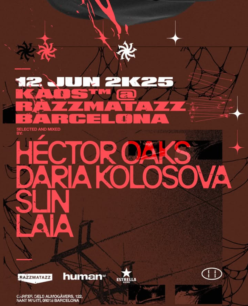 RAZZMATAZZ BARCELONA KAOS TAKE OVER 12.06. CON / @hectoroaks @dar.key @____laia_____ @slin_dj @razzmatazzclubs @human_bcn consigue tus tickets aquí! @hectoroaks trae su KAOS a la semana más electrónica de Barcelona, cada año la ciudad condal se convierte en el epicentro de la escena electrónica a mediados de junio y KAOS estará presente en uno de los clubs más legendarios de la ciudad, Razzmatazz, la sala multiespacio en el barrio de la Marina. KAOS ya ha pasado por Berlín, Amsterdam, Rotterdam o Bassiani en Tbilisi el pasado 9 mayo con el gran Richie Hawtin como invitado estelar. El madrileño afincado en Berlín une a sus guerreros para partir caderas en sus eventos especiales de estilo ecléctico en esta ocasión Hector estará acompañado para generar el Kaos en Barcelona por @dar.key , la Dj ucraniana visita Razzmatazz por primera vez, además la KAOS crew con @slin_dj y vía Ave desde Madrid @____laia_____ unidos para mover Barcelona en una noche de sudor y bombos. Ya sabes, FUEGO y Rave garantizados!!