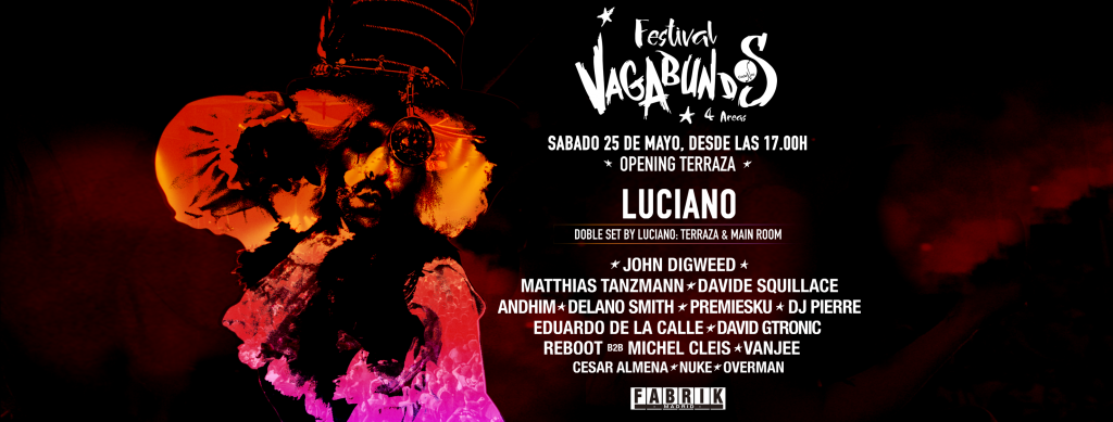 El próximo sábado 25 de mayo desde las 17:00 vuelve Luciano a Fabrik Madrid junto con todo el espectáculo y el ambiente especial de las noches Vagabundos de Ibiza. Por si esto fuera poco, esta fiesta nos tiene reservadas varias sorpresas, como la apertura oficial de la zona Open Air de Fabrik para la temporada de verano 2019, o la doble ración de Luciano que tendremos para este evento, ya que actuará por la tarde en la terraza y por la noche estará cerrando la Main Room como broche de oro para este evento.Por suerte para nosotros, Luciano no estará solo en este nuevo desembarco del equipo de Vagabundos en Fabrik: podremos disfrutar de grandes nombres acostumbrados a encabezar los mejores carteles como pueden ser John Digweed, Matthias Tanzmann o Davide Squillace. Tambien contaremos con la presencia de algunos de los nombres más interesantes de la escena deep/minimal house como Andhim, Premiesku o David Gtronic. Mención especial merecen la presencia del padre del sonido acid, Dj Pierre, y del representante más housero de la escena de Detroit, Delano Smith. Por supuesto no pueden faltar los representantes del sello Vagabundos, Reboot, Michel Cleis, Eduardo de la Calle o Vanjee, y los infalibles residentes de la sala Fabrik: Cesar Almena, Nuke y Overman.Consigue tu entrada anticipada antes de que se agoten en www.ticketclub.es, y aprovéchate de la oferta especial con tan solo 1000 entradas a 15€.www.ticketclub.es/web/producto/905
