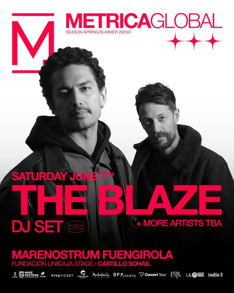 Metrica, el proyecto más estimulante de la escena malagueña hará su debut en Marenostrum Fuengirola el próximo 7 de junio. Si amas la música electrónica, si la pasión por este estilo burbujea con fuerza en tu torrente sanguíneo, uno de los eventos que no te puedes perder en este 2025 es el evento que Metrica ha diseñado el próximo 7 de junio en Marenostrum Fuengirola. Un evento que contará como cabeza de cartel al dúo The Blaze. THE BLAZE La clave del éxito de The Blaze es su sonido, un sonido propio que ha permitido al dúo francés cruzar continentes. The Blaze se han posicionado como una de las propuestas musicales más importantes de la escena electrónica, destacando no solo por su propuesta melódica sino también visual. A través de sus vídeos logran tocar algunas de las temáticas más humanas, buceando entre la fragilidad de la amistad y las relaciones personales con una melancolía abrumadora. En resumen, The Blaze es un dúo francés de música electrónica que ha logrado cautivar a la audiencia con su originalidad y habilidad para crear canciones emotivas y cinematográficas. Su trayectoria ha sido breve pero intensa, y han logrado posicionarse como uno de los grupos más influyentes de la música electrónica contemporánea. METRICA Los “culpables” de esta maravillosa oportunidad es Metrica, una fiesta de música electrónica creada por Miguel Payda, consolidada como un referente en la escena underground. Con una selección artística cuidadosamente curada y una producción de alto nivel, ofrece una experiencia inmersiva donde el sonido, la iluminación y la puesta en escena se combinan para crear una atmósfera única. El evento destaca por su enfoque en la calidad musical, apostando por DJs y productores reconocidos dentro de géneros como el techno, house y minimal. Además, suele realizarse en ubicaciones especiales, como espacios con alto valor histórico, espacios industriales, clubes exclusivos o entornos al aire libre, potenciando la conexión entre el público y la música. Bajo la visión de Miguel Payda, Metrica se ha convertido en más que una simple fiesta: es una comunidad de apasionados por la música electrónica que buscan experiencias innovadoras y fuera de lo convencional. Cada edición es una celebración de la vanguardia sonora, donde la pasión por el ritmo y la estética se fusionan en una experiencia inolvidable. Muy pronto se anunciarán nuevos artistas para este evento en Marenostrum Fuengirola el próximo 7 de junio. Mientras tanto ya puedes conseguir tus entradas aquí. SOBRE MARENOSTRUM El ciclo musical Marenostrum Fuengirola celebrará en 2025 su décima edición. Nacido como una apuesta del Ayuntamiento de Fuengirola para la proyección de la ciudad a nivel internacional atrayendo talento musical, el recinto fuengiroleño se establece como un espacio donde la cultura y la música se fusionan para ofrecer al público una experiencia inmersiva a orillas del Mar Mediterráneo, resguardado por la historia del Castillo Sohail y la Ciudad Romana de Suel. El imponente escenario Unicaja, situado en la loma del castillo Sohail, es capaz de albergar una capacidad de más de 18.500 personas. El escenario de pequeño formato Fundación Unicaja / Castillo Sohail, adquiere la magia cultural recibiendo aquellas actuaciones más íntimas, resguardando en sus murallas históricas a los 2.400 asistentes que viven y sienten las letras de sus cantantes favoritos desde la más sincera cercanía. Gracias al esfuerzo y afán de superación que caracteriza al recinto fuengiroleño, ha recibido los siguientes reconocimientos: seis nominaciones en los Iberian Festival Awards en el año 2023; Ciclo de Conciertos con mayor asistencia de España los años 2022 y 2023. Además, en su apuesta por la sostenibilidad dentro del plan en el que se trabaja anualmente por la mejora del espacio, fue uno de los nominados finales a “The Green Operations Award” por los European Festival Awards en 2023. El recinto se ha establecido como referencia nacional en los conciertos, recibiendo algunas de las actuaciones que solo se realizan en los grandes espacios de Madrid y Barcelona. Se ha posicionado como uno de los recintos más atractivos para el público y los artistas. Más de 500 grandes artistas han pisado los escenarios del recinto fuengiroleño.