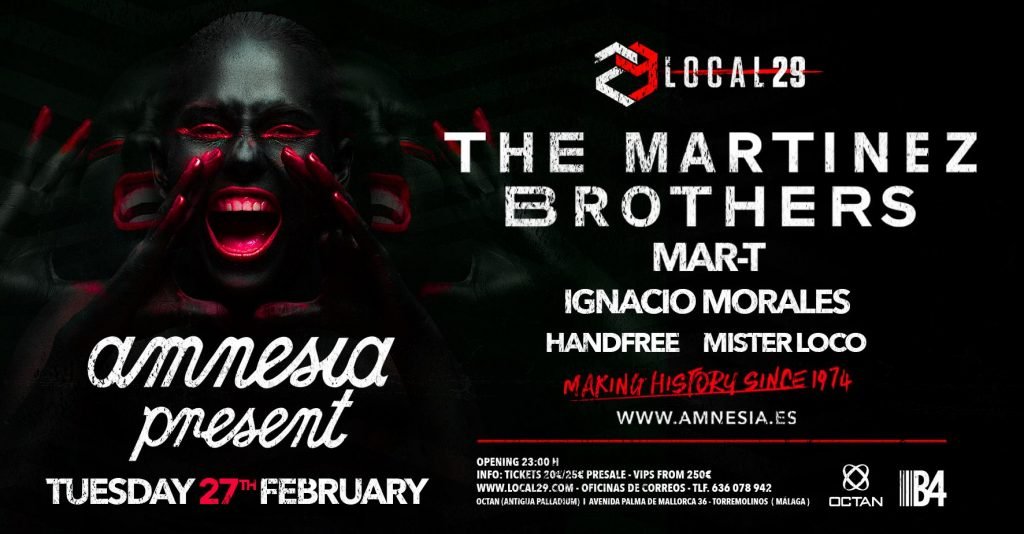 Loco Dice, Paco Osuna, The Martinez Brothers y Nastia serán algunos de los artistas que tomarán las riendas de la cabina en los próximos meses. Un evento especial para el día de Andalucía, y la segunda edición del Local29 Fest, del que miles de personas ya disfrutaron el pasado año conMarco Carola en cabina. Dos eventos, que más bien podrían ser considerados grandes festivales y es que en Local 29 nos hemos propuesto atacar la segunda mitad de la temporada como mejor sabemos, es decir, con eventos de primer nivel internacional. El primer evento tendrá lugar el próximo martes 27 de febrero (víspera de festivo) con motivo de la festividad del día de Andalucía en el cual se ha hecho SOLD OUT a falta de 2 semanas. Amnesia Ibiza nos vista este día en su formato “Amnesia Presents” y en Local29 bailaremos el house más underground de la mano de la pareja de hermanos que ha revolucionado las cabinas del mundo entero, The Martinez Brothers. House y tech-house cargado de energía, e impulsado por la destreza y habilidad innata de los hermanos Martinez que se han convertido en una de las parejas más demandadas en el panorama mundial y con los cuales no nos cabe duda nuestro club no parará de bailar. Completando el elenco de invitados de la noche, a los que en próximas fechas se añadirán los djs residentes y el soporte local, estará el español Mar-T, referente en la escena ibicenca e impulsor del club Amnesia, nos plasmará su eclecticismo adornado por atmósferas de buenas vibraciones y profundos bass lines. Tras la bacanal de electrónica que viviremos el día 27, tendremos exactamente un mes para recuperarnos y afrontar el que probablemente sea el mayor evento de características in door, de toda Andalucía cuyo hilo conductor sea la música electrónica. Hablamos de Local 29 Fest 6.0, un evento que ve este año su segunda edición, y donde el año pasado más de 2500 personas bailaron al ritmo de Marco Carola en el Auditorio de Torremolinos. Este año, en el mismo emplazamiento la tendencia del festival debe ser ascendente, por ello, el line up no podía dejarse al azar y los maestros de ceremonias serán dos de los mejores djs de formato underground de todos los tiempos. Hablamos de LOCO DICE y PACO OSUNA, dos artistas cuya fama les precede y ha sido labrada después de toda una vida de trabajo tras las mesas de mezclas que los ha llevado tan alto en la electrónica, que han marcado un nuevo nivel en la misma. Completando el Line Up contaremos con NASTIA, CALEB CALLOWAY, KARRETERO e IGNACIO MORALES. Las entradas promocionales de lanzamiento para ambos eventos se agotaron en cuestión de horas y es que ha quedado constatado que el público andaluz sabe apreciar el binomio formado por Local29 y la electrónica de primer nivel mundial. El evento de AMNESIA PRESENT LOCAL29 ya se encuentra SOLD OUT a casi 2 semanas de su celebración y la siguientes remesa de entradas para Local29 Fest 6.0 están ya a la venta al igual de las mesas vips para el evento siendo estas muy limitadas para una mayor comodidad del público que se decante por este tipo de opción. www.local29.com