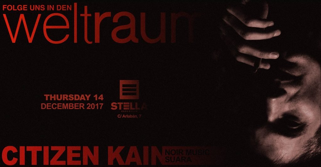 Weltraum vuelve con mucha fuerza en esta nueva localización como es el mítico Stella Club que tras unos años, ha reabierto sus puertas este septiembre. Y bueno, qué mejor que estrenarnos aquí con Citizen Kain, el artista que no para de asombrar con sus producciones en Suara y Noir Music Official (a menudo junto a su compañero Kiko) y que llega por primera vez a Madrid. También tendremos en cabina a Danny B y a Pure & Filthy (Afrobeat B2B DWriter) . ¡Así que a disfrutar del jueves 14 de diciembre! ———————————– LISTAS (antes de las 02:30): – 8€ x 1 Drink – 12€ x 2 Drinks SIN LISTAS (antes de las 02:30): – 10€ x 1 Drink – 15€ x 2 Drinks DESPUÉS: – 15€ x 1 Drink ———————————– LINE UP: – Citizen Kain (Noir Music/Suara) – Danny B (Time has changed/The Plot Music) – Pure & Filthy (Weltraum) ———————————- – CITIZEN KAIN: https://www.youtube.com/watch?v=H57G6XZjXDM – DANNY B: https://www.beatport.com/track/trip-to-orihuela-original-mix/9331407 – AFROBEAT: https://www.beatport.com/track/white-space-feat-tenisara-original-club-mix/8927813 Vídeo >>> https://www.facebook.com/weltraumevents/videos/1271857386252349/
