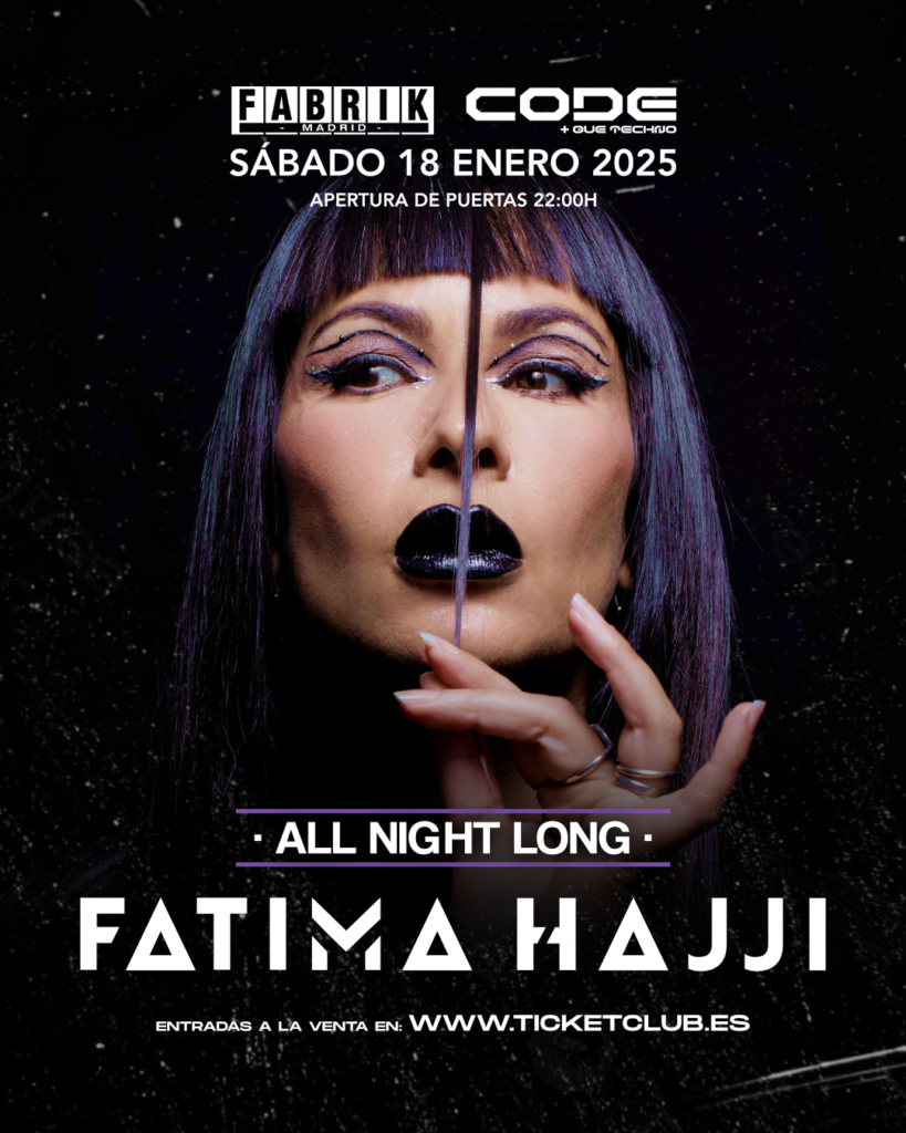 La dj salmantina protagoniza esta noche exclusiva el 18 de enero de 2025, por tercer año consecutivo Fatima Hajji está convirtiendo en tradición comenzar el año con un formato especial para todos sus seguidores. La dj y productora salmantina vuelve al Main Room de Fabrik como absoluta protagonista All Night Long en su tercera entrega, tras el éxito arrollador del Sold Out en la edición de 2024. Uno de los escenarios más representativos de la escena techno, Fabrik, se alía con Fátima Hajji para esta noche única dedicada a su sonido. Un proyecto que gracias a la espectacular acogida de las anteriores ediciones se ha hecho su hueco propio en la programación de la sala madrileña, con el objetivo de volver a batir todos los récords en esta nueva edición, donde no faltarán las últimas producciones de la salmantina, o sus tracks más atemporales de sus más de veinte años de carrera en la escena. La conocida como reina del hard techno arrollará de nuevo en su paso por Fabrik el próximo 18 de enero, una fecha en la que se desplegará una producción audiovisual sin precedentes en la Main Room de Fabrik. Un despliegue escenográfico diseñado exclusivamente para este All Night Long. 2024 ha sido un año de vértigo para Fatima Hajji, que arrancó visitando Asia, y en el que ha vuelto a girar por toda Europa, destacando Holanda, Polonia, Hungría, Suiza, Alemania, Malta o Croacia, además de repetir en Mexico o EEUU, y finalizar la temporada en Chile, Colombia y Costa Rica. Imprescindible en festivales en el circuito nacional como Off Week, A Summer Story, Monegros Desert Festival, o siendo protagonista de eventos clave en la escena como Aquasella o la primera edición de Time Warp Madrid, ha estado también presente en festivales internacionales como Awakenings, Airbeat One Festival, Barrakud, Free Your Mind, Ritvales o Solar Weekend Festival. Un año sin descanso que pondrá un punto y seguido con este evento exclusivo All Night Long el 18 de enero de 2025.
