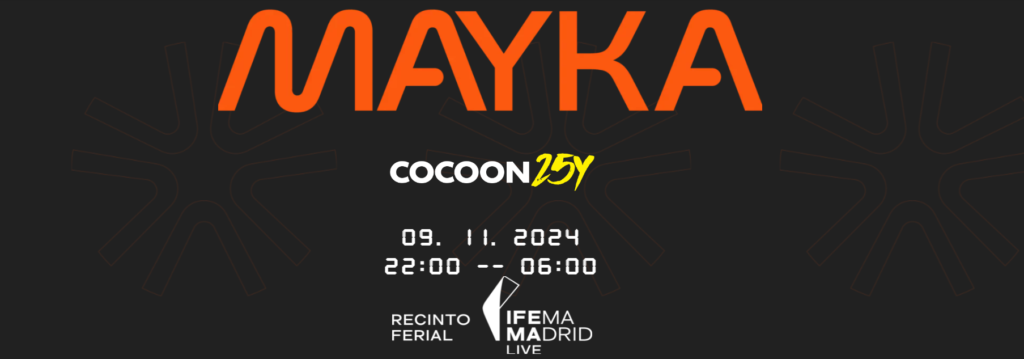 Mayka festival aterriza en Madrid de la mano de Cocoon y su 25 aniversario El lugar elegido para el evento será el Recinto Ferial de Ifema @maykafestival & @cocoon_official se alían para el 25 aniversario de la marca que llegará al Recinto Ferial de @ifema_madrid el próximo 9 de noviembre Una selección de artistas que congregará un line up cargado de sorpresas, clásicos y artistas mas emergentes, con un toque legendario de las fiestas de los años 90. La novedad de la promotora Mayka Festival incluye una política de «no phone» con el fin de que los asistentes se centren en la música, su conexión y las ganas de bailar durante toda la noche. Se avecina una experiencia sonora sin precedentes diseñada para los auténticos ravers con un sonido clásico y referente a lo largo de la historia de la música electrónica. TICKETS AQUÍ Fuente: Instagram Official