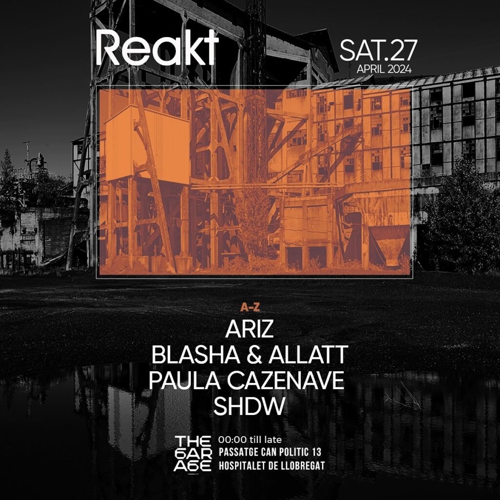 REAKT Presenta: ARIZ + Blasha & Allatt + Paula Cazenave + SHDW en The Garage Barcelona
