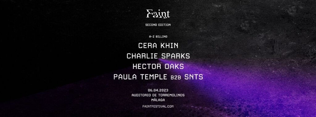 Cera Khin, Charlie Sparks, Hector Oaks y el b2b entre PaulaTemple y SNTS, son los principales reclamos de la segundaedición. Málaga, 29 de Marzo de 2023Tras una primera edición el pasado 27 de febrero en la que toda la costa del sol bailó al ritmo delmejor techno, Faint Vuelve el proximo 6 de abril, Jueves Santo, con una noche donde el technocrudo y de bpms imposibles vuelve a tomar las riendas de la noche en el Auditorio deTorremolinos.En el apartado artístico, al segunda edición sigue la senda que se marcó en la anterior, con losprincipales nombres de la escena europea en cuanto a techno, acid y hard-techno respecta. Enesta ocasión, 4 son las actuaciones que marcan la línea musical, Cera Khin, Charlie Sparks,Hector Oaks y el esperado y demandado b2b entre Paula Temple y SNTS. El festival, una vezmas volverá a contar con una producción lumínica y sonora de primer nivel, que llevan laexperiencia Faint al máximo exponente.Los primeros tramos de entradas, están agotados y los últimos tramos de entradas anticipadashan sido activados, lo que nos lleva a confirmar una vez más un gran éxito de asistencia queconfirma que la Costa del Sol estaba ávida de puro techno. Las entradas pueden adquirirse através de la web oficial del festival, https://faintfestival.com/