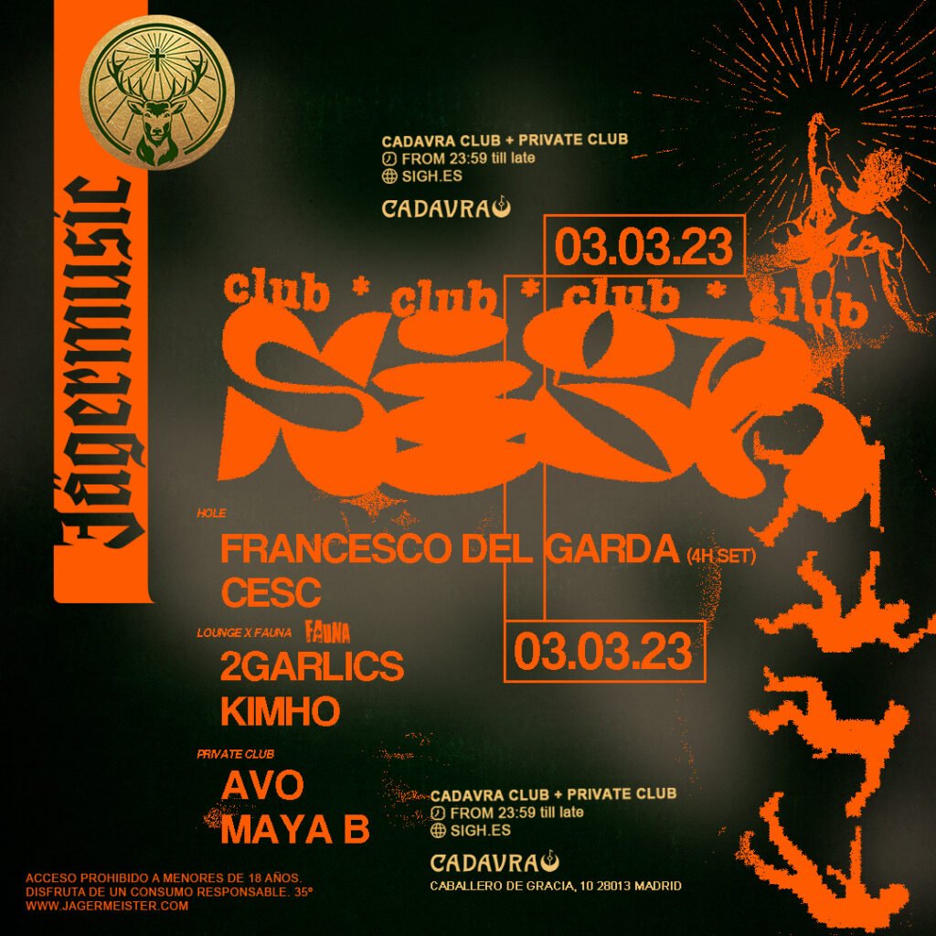 Así es, después de 3 años de su última aparición en la capital, hoy Sigh Club ha anunciado que el dj italiano Francesco del Garda retornará a Madrid el 3 de marzo. La fiesta madrileña, celebrada los viernes en Cadavra Club y que cuenta ahora con un formato mensual de horario extendido, ha apostado este 2023 por una progresión coherente y cada vez a más. Si en su primera noche de diez horas Sigh contó con la crew de la fantástica fiesta alicantina Muelle, en su segunda noche lo hizo con el afamado dj británico Andrew James Gustav, creador del sello discográfico Marginal Returns y residente en Berlín. Aquella fecha de febrero, que fue un éxito y que se desarrolló igualmente en dos espacios contando con la inclusión de colectivos locales como Ombligo y con sesión back to back de Avo y Cesc, parece ahora sólo el preludio de lo que llegará en un par de semanas. El 3 de marzo Sigh Club realizará otra fiesta con dos localizaciones y contará con un plantel que recombina de forma creativa y prometedora el mimo por lo local y el respeto por las figuras renombradas internacionalmente. Primero de 0h a 6am, se desarrollará en Cadavra Club una noche en dos espacios. El piso superior, The Lounge, tendrá sesiones de 2Garlics y Kimho, tres djs conocidos de sobra en la capital que estarán en representación del colectivo Fauna. Mientras, en The Hole, Cesc (Medina Sound, residente de Sigh) realizará el warm up para un Francesco del Garda que no solamente ha tardado mucho en regresar, sino que lo hará con una sesión de cuatro horas. Del Garda es el fundador del celebradísimo sello Timeless y una de las figuras indispensables del desarrollo del house europeo en las últimas dos décadas. Su reputación es tal que le ha llevado a trabajar en las mejores salas y festivales del continente y el globo, con lo que verle en un espacio tan íntimo y peculiar como Cadavra será una ocasión extraordinaria. Por si esta extensión musical y extática no resulta suficiente, la fiesta seguirá en una localización secreta próxima al lugar, en la que otros dos jóvenes y grandes selectores locales, AVO y Maya B, pondrán la guinda a una de esas noches que se extienden hasta que el día comienza a clarear. Las entradas anticipadas se venderán en tres fases que incluirán Early bird a 15€, 1st release a 20€ y 2nd release a 25€. Están a la venta desde ya en Resident Advisor (https://ra.co/events/1659235).