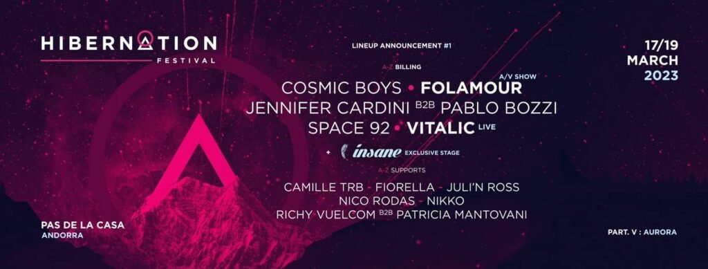 LA FIESTA DE INVIERNO MÁS LOCA DE LOS PIRINEOS VUELVE PARA SU 5ª EDICIÓN. Fuente prensa Hibernation Tras el éxito de la 4ª edición, los organizadores vuelven con aún más ambición. Aurora es el nombre de esta 5ª edición, que promete sorprender a más de 4.500 asistentes al festival por noche. Tras una edición de 2022 en laque se agotaron las entradas para los dos días, los organizadores vuelven con aún más ambición. «Este año queremos ir un paso más allá, si no dos, para alcanzar lo mejoren términos de experiencia para nuestro público. Se hará hincapié en la decoración, el espectáculo visual y la propuesta festiva. Queremos que todo el mundo salga con estrellas en los ojos y que piensen que Hibernación es realmente un fin de semana aparte, a vivir una vez al año, pero sobre todo para compartirlo, con amigos, en familia o en pareja», explica el director del festival, Clément Dupont. Sigue siendo la misma receta: montañas, nieve, encuentro de públicos franceses/andorranos/españoles, pero con nuevos ingredientes para darle más sabor: la aparición de una nueva etapa, la Etapa de Montaña.Estará situado en la parte superior de las pistas de 11 a 17 horas y será accesible de forma gratuita para todos los esquiadores de la estación de Grandvalira. «Para nosotros, el reto era poder ofrecer un entornoexclusivo para todos los esquiadores y acentuar este encuentro entre el esquí y la música», explica Adrien Serres, uno de los promotores. En cuanto al iglú, el emblemático escenario diurno, los organizadores desean desarrollarlo : «Este año tenemos prevista una decoración aún más envolvente, pero también artistas de renombre. Los asistentes al festival guardan un increíble recuerdo de los días en el escenario iglú del año pasado, todavía hablan de ello. Queremos sorprenderles este año», dice Guenael Kermel, que también organiza el festival y esdecorador profesional de eventos (Vibe Architects).En cuanto a la programación, los asistentes podrán encontrar al productor, autor y compositor francés Vitalic, cabeza de cartel del último Festival de Monégros, al dúo francés Cosmic Boys, que acaba defichar por Drumcode, el emblemático sello de techno. También encontraremos al productor francés Space 92, una nueva estrella emergente del techno, Folamour y sus sets House y groovy que se hanconvertido en una referencia en Europa. Por último, la DJ Jennifer Cardini y Pablo Bozzi, jefe del dúo Infravision, nos agasajarán con un B2B inédito y muy prometedor. En cuanto a las colaboraciones, esteaño Hibernation invita al festival Insane, que se desplaza por primera vez; para una noche. «Tras el éxito de nuestra colaboración con la familia Piknik, queríamos trabajar con otro equipo y la elección se hizorápidamente, porque Insane es para nosotros una referencia en la música electrónica», subraya Alexandra Rivière, asociada del festival.A sólo 2 horas de Toulouse, el festival mantiene los códigos de su éxito: un capullo íntimo reservado esta vez a 4.500 personas (por noche), un público internacional reunido en torno a #JOINTHENATION y unosprecios ultraatractivos para un festival de montaña. El paquete estrella, la oferta combinada con forfait en el dominio de Grandvalira, a sólo 135€ por 2 días de esquí + un pase festival de 2 días. Cuenta con 55€para los 2 días de festival sin forfait, pero date prisa, los precios subirán por fases, ¡como cada año! Y lo que es mejor, los organizadores proponen una asociación con Surf.Evasio, para beneficiar dedescuentos en el alquiler de material de esquí. También se han establecido colaboraciones con los alojamientos de todas las ciudades entre Pas de la Case y Andorra la Vella, y las lanzaderas los conectaráncon el festival, de día como de noche ENTRADAS Y BONOS: https://link.dice.fm/viragetv