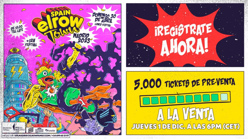 ELROW TOWN VUELVE CON MÁS FUERZA QUE NUNCA EL PRÓXIMO 30 DE ABRIL ¡PREPÁRATE PARA LA MAYOR EXPERIENCIA DE TU VIDA! NO HAY MEJOR FORMA DE CONOCER EL MUNDO CREATIVO QUE HAY DETRÁS DE ELROW QUE A TRAVÉS DE NUESTROS PROPIOS FESTIVALES. ¡VEN A DESCUBRIR NUESTRO MÁS ESPECTACULAR UNIVERSO INMERSIVO EL PRÓXIMO 30 DE ABRIL EN EL RECINTO FERIAL DE IFEMA MADRID! Toda la info y la preventa aquí ¿QUIÉN ES SUPERROWGE? Por primera vez en la historia, elrow Town redefine su línea gráfica representando la idea de comic de los 80 y 90, presentando a SuperRowge, la superheroína más famosa por luchar contra el aburrimiento. Sus plumas amarillas desprenden ahora unos polvos de colores que solo con tocarlas, e incluso rozarlas, TE HACEN FELIZ. ¡Y esto no es todo! Ahora Rowgelia tiene la superhabilidad de producción y un aumento de creatividad. Con esta transformación, SuperRowge creará los mundos más mágicos y las temáticas más divertidas de la historia de elrow. ¿QUIÉN ES MR.BORING? Experto en intoxicar de aburrimiento a todo el mundo con su humo. Si lo ves ¡Huye! Te quitará cualquier momento de felicidad te hará volver a la rutina del día a día y te quitará todo ápice de locura que puedas tener.¿Podrá SuperRowge hacer que Mr. Boring se lo pase bien con sus poderes?