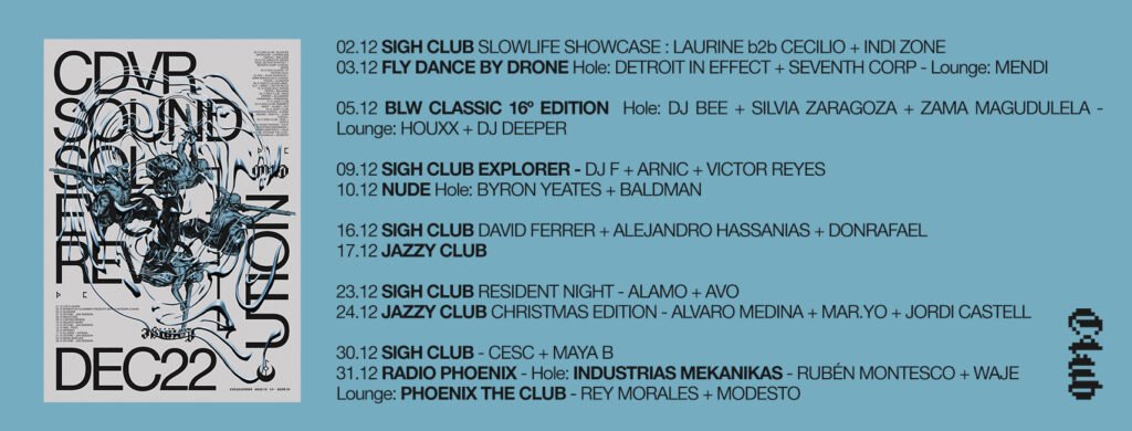 El club madrileño que abrió sus puertas hace apenas diez meses vuelve a traer la fiesta internacional Nude con otro invitado sensacional: Byron Yeates. Además, también invita al sello y colectivo Slow Life (S. Moreira, Cecilio, Laurine…) con un día completo de concierto y sesiones y recibe de la mano de la agencia Drone Booking al eminente dj estadounidense Detroit in Effect. Diciembre es complicado. Un mes lleno de gastos pero de ganas de celebrar el final del año y reunirnos con nuestros allegados, nos propone la disyuntiva entre refugiarse en casa o salir y disfrutar; festejar lo pasado o procurar olvidarlo; apostar por el futuro o por un presente alegre. En el mundo del ocio resulta cada vez más complicado elegir. La cantidad de oferta parece empezar a superar a la demanda y en una ciudad como Madrid los planes se multiplican debido a la efervescencia derivada de habernos sobrepuesto al COVID. En mitad de todas estas flagrantes y variadas propuestas, la de Cadavra Club, vuelve a destacar con luz propia. En el último mes del año el espacio situado junto a Gran Vía, incluye una programación de Sigh retrospectiva, que mira a sus grandes éxitos y a sus diligentes djs locales y residentes. Abre el mes dicha fiesta el viernes día 2 con una fecha que nos recuerda a la era prepandémica: un concierto de S. Moreira & Band por la tarde y un Showcase de Slow Life por la noche. Lo que dará comienzo con una jam de funk, jazz y sonidos pulidos, continuará con una sesión de Indi Zone y un b2b de all star: Cecilio y Laurine poniendo la euforia y el sonido espacial a la noche. El sábado 3 de diciembre será el turno del regreso de Drone Booking. La agencia de reciente formación, que llenó su última fecha junto al colectivo almeriense MASA Series, apuesta esta vez por un artista internacional de recorrido intachable: Detroit in Effect. Tameko J. Williams es un especialista en el djing a la vieja usanza y uno de los promotores del electro en una de las ciudades más importantes para la historia de la cultura de club. Junto a este ineludible del panorama estará Seventh Corp (Aiken) haciendo un set más sereno y repleto de matices de lo habitual y Mendi, con un all night long en The Lounge. Aprovechando el puente, el lunes Cadavra celebrará otra sesión que demuestra la versatilidad de su propuesta. Se trata del regreso de BeeLive World, que tras celebrar su decimosexto aniversario en la sala, vuelve para despedir el año con dos zonas e ideas muy estimulantes para los amantes del house. The Lounge se reservará para “New faces of house”, que incluirá a dos jóvenes Djs que comienzan a despuntar en el panorama: Dj Deeper y Houxx. The Hole acogerá de nuevo a Dj Bee y Silvia Zaragoza, con la novedad de incluir a Zama Magududela, cantante sudafricana que pondrá las voces a algunos de los temas. Otra celebración de la tradición y el presente. La segunda semana de diciembre, contará con una nueva Sigh Explorer Night. Esta noche que la fiesta de los viernes celebra en honor a sus socios y a la escena local, permite la entrada gratuita a todos los que presenten su tarjeta del club. En ella habrá sesiones del prestigioso DJ F (Ideograma) y dos jóvenes y habituales de la escena capitalina: Arnic y Víctor Reyes. Como os veníamos contando, el sábado 10 será el turno de Nude. Celebrando con auténtico éxito su primera noche en Cadavra en octubre, cuando trajo a la residente de Berghain Sedef Adasï; la fiesta Berlinesa aprovecha esta ocasión para traer a otro Dj internacional joven y de gran renombre, Byron Yeates. Nacido en Irlanda y residente en Berlín, Yeates es el manager del puntero sello Radiant Records, en el que ya han participado productores de la talla de Maara o Bliss Inc., y en el que el propio Byron ha sacado un extraordinario EP este año: “Sweat Ur Prayers”. Le acompañará y hará los honores Baldman, dj local que lleva ya un tiempo destacando en la escena nacional con su extravagante e intensa propuesta. Para la tercera y cuarta semana del mes, Cadavra contará con sendas noches de Sigh Club y Jazzy los viernes 16 y 23 y los sábados 17 y 24 respectivamente. Ambas fechas de Sigh tendrán un sabor local, para celebrar lo bien que la ciudad ha acogido la propuesta en el club ubicado en Caballero de Gracia. Mientras que el 16 podrá disfrutarse de sesiones de David Ferrer, Alejandro Hassanías, el 23 de diciembre será la Resident Night con Avo y Álamo como protagonistas. El sábado de Nochebuena será Jazzy Club: Christmas Edition y contará con los residentes Álvaro Medina, Mar.yo y Jordi Castell. Cadavra tendrá, para acabar, una última semana con varias de las propuestas locales más establecidas en la capital. Sigh Club contará el día 30 con dos nombres indispensables de Madrid como son Cesc (Medina Sound) y Maya B. El sábado 31 Radio Phoenix cerrará el año con Industrias Mekanikas. La crew del local de Malasaña estará representada por Modesto y Rey Morales en The Lounge, mientras que el sello afincado en Madrid tomará The Hole con su sonido oscuro y recio de la mano de Rubén Montesco y Waje. Se despide un 2022 de resurgimiento con esperanzas en lo que la escena de la capital traerá.