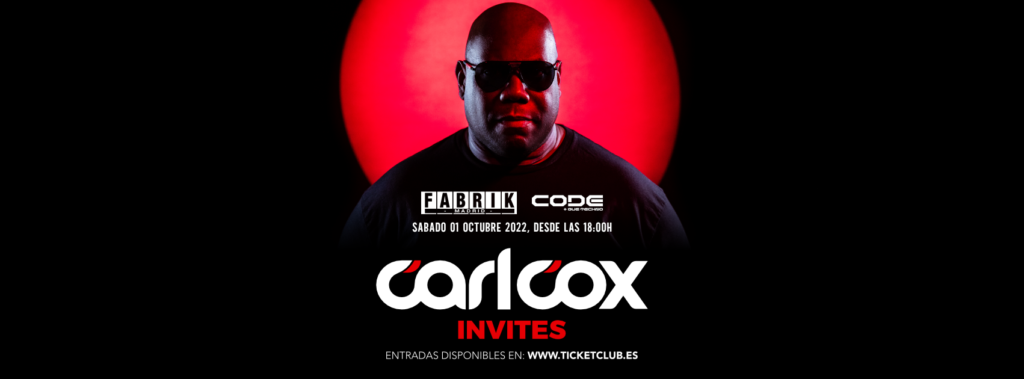 Horarios y espacios para Invites con Carl Cox este sabado 1 de octubre ¡Despegamos! Este sábado volvemos a recibir al rey de reyes en #Fabrik. @carlcoxofficial realizará un set súper exclusivo en formato live en el HANGAR y más tarde, OJO, el cierre de la main room. Una de esas sesiones que se recordarán durante meses entre estas cuatro paredes. ¡Últimas entradas a la venta!