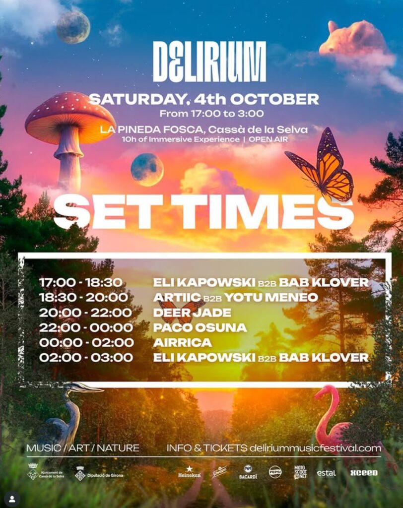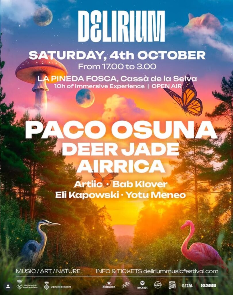 Después de un año imparable en el que Delirium ha logrado consolidarse como uno de los festivales electrónicos de referencia en Catalunya, llega el broche de oro: el Closing de temporada 2025, el próximo sábado 4 de octubre en La Pineda Fosca de Cassà de la Selva.